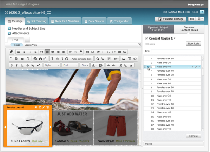 The drag and drop interface provided an intuitive way to create rule conditions using personalization, behavioral and transactional data. When these rule conditions are met, a specific piece of content is displayed in the message.